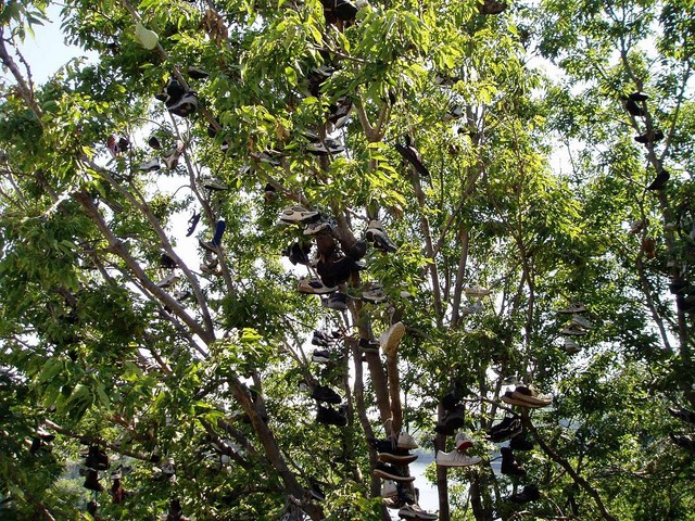 我想這些樹真的很老了才可以爬到那麼高掛那麼多雙鞋