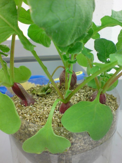小蘿蔔們都長出土面還撐開他的包膜(我也不知道叫什麼啦!)了呢!